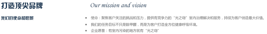 2012年公司斥巨資從德國專業(yè)空氣研發(fā)實驗室引進銳鈦型納米二氧化鈦研發(fā)成果,同時與國內(nèi)知名高校進行合作,成立“光之吻”品牌,致力于為人類創(chuàng)作純凈,健康的呼吸環(huán)境,成為你身邊的健康衛(wèi)士,實現(xiàn)365天健康呼吸的夢想,目前是同類產(chǎn)品中最有競爭力的品牌之一。